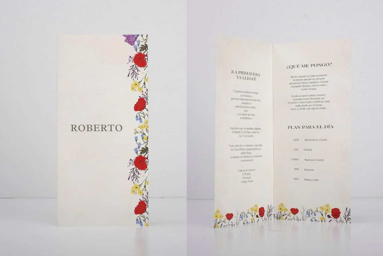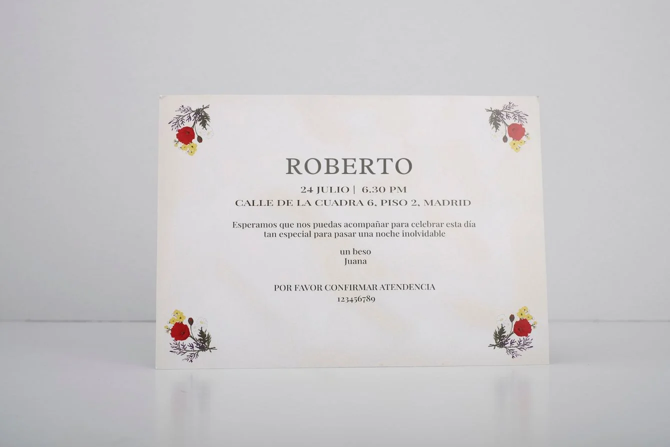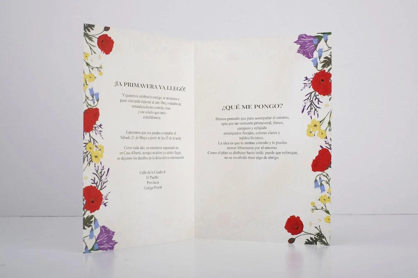 - Invitaciones: Diferentes tamaños a elegir. Realizado en estucado mate de 350 gr, impresas a todo color en ambas caras. También puedes elegir la opción troquelada con la forma que elijas.