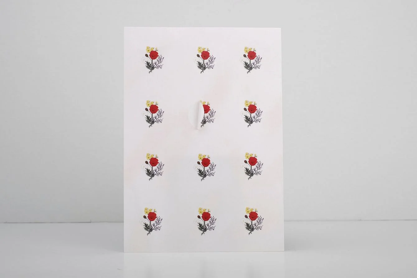 - Hola de pegatinas A5: cortadas a medio corte en adhesivo permanente mate.