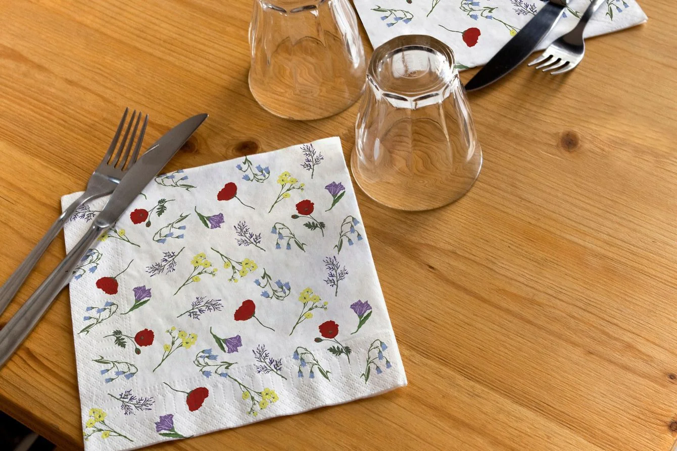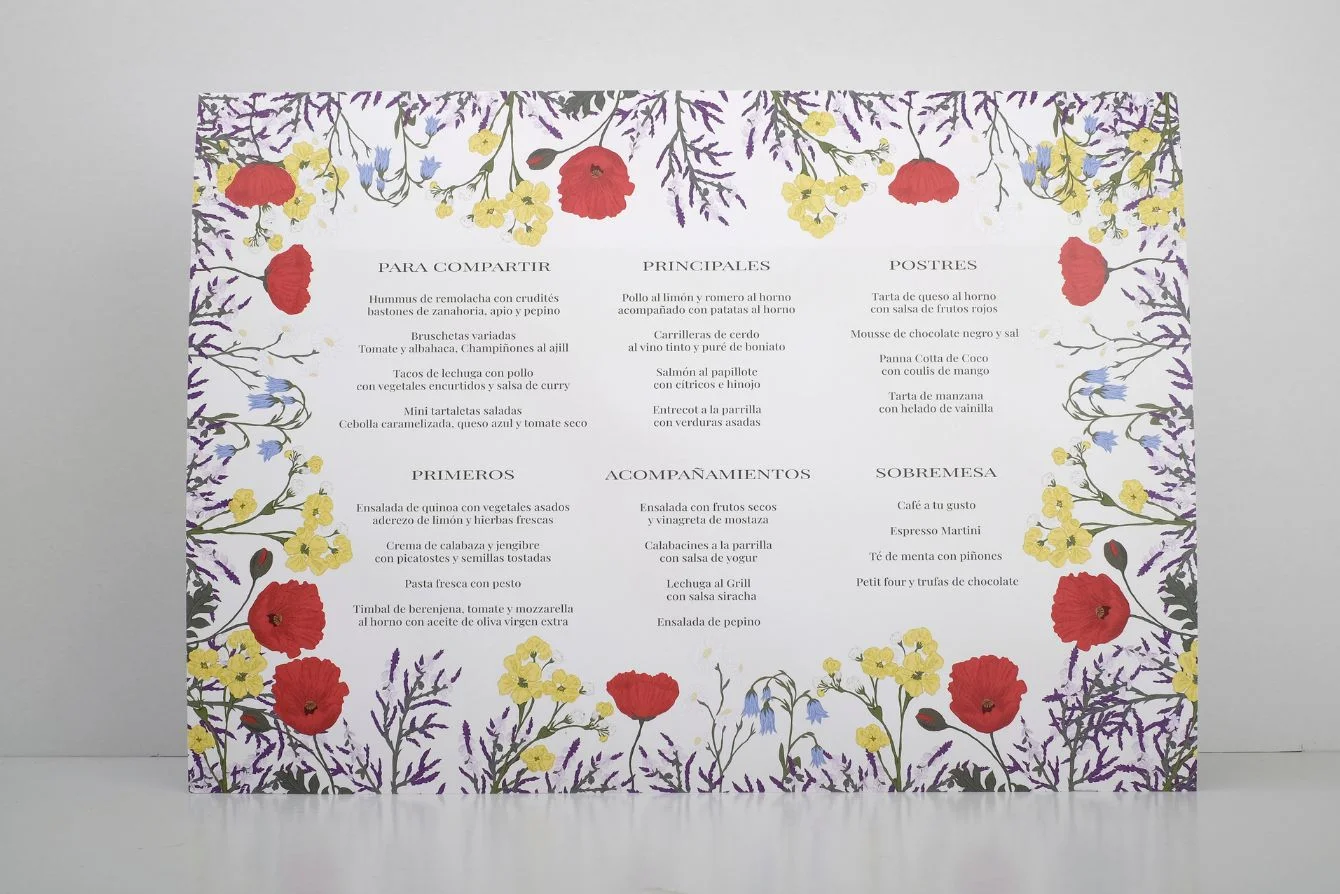 - Mantel de papel: Realizados en papel Offset de 90 gr. blanco en tamaño de 32x45cm. Eco Friendly.