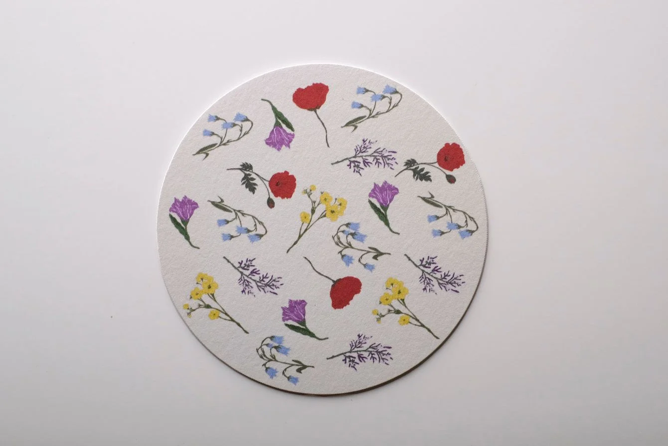 - Posavasos: Realizados en papel posavasos de 375 gr. absorbente, troquelado con forma libre suave.