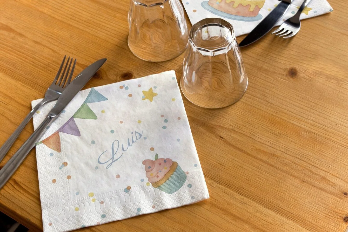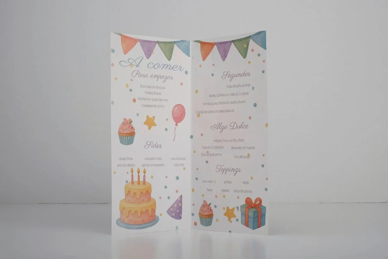 Materiales Adaptados: Desde la elegancia del papel texturizado para tus invitaciones hasta la practicidad del PVC para manteles resistentes a prueba de niños.