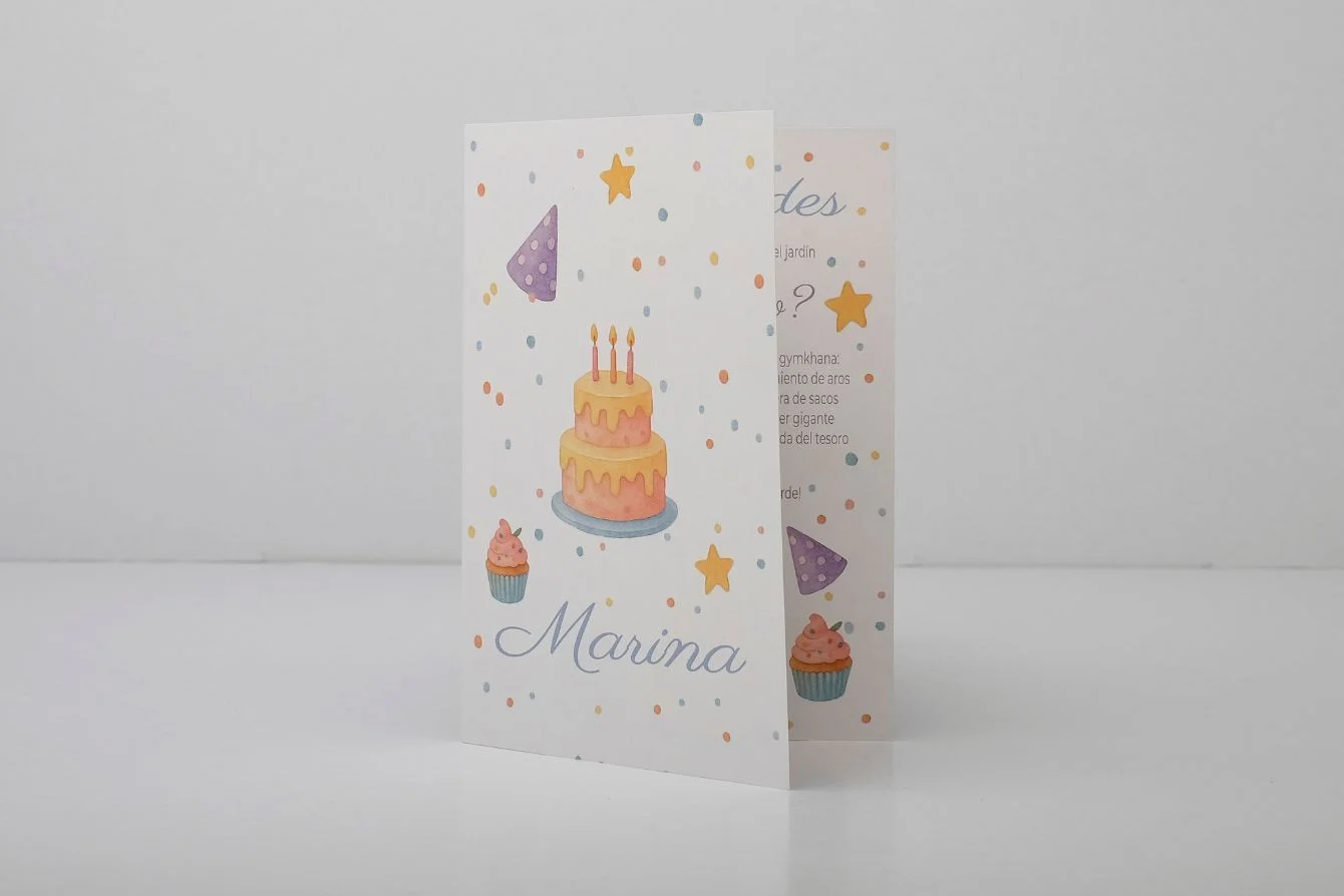 - Invitaciones: Diferentes tamaños a elegir. Realizado en estucado mate de 350 gr, impresas a todo color en ambas caras. También puedes elegir la opción troquelada con la forma que elijas.